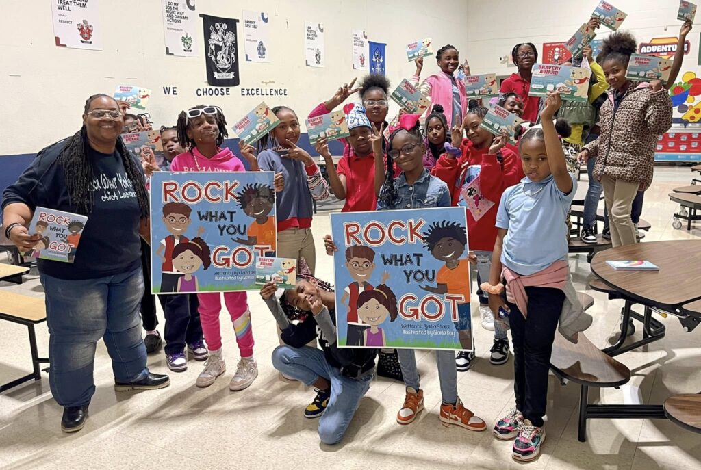 My very first book, Rock What You Got, promotes the diversity of people and how we’re all unique. It has a kid with a bald head, a kid in a wheelchair, short, tall, skinny kids—just showing the different ways kids show up. We also include activities at the end of our books: discussion questions, glossaries, matching games—different ways to reinforce what was happening in the story.